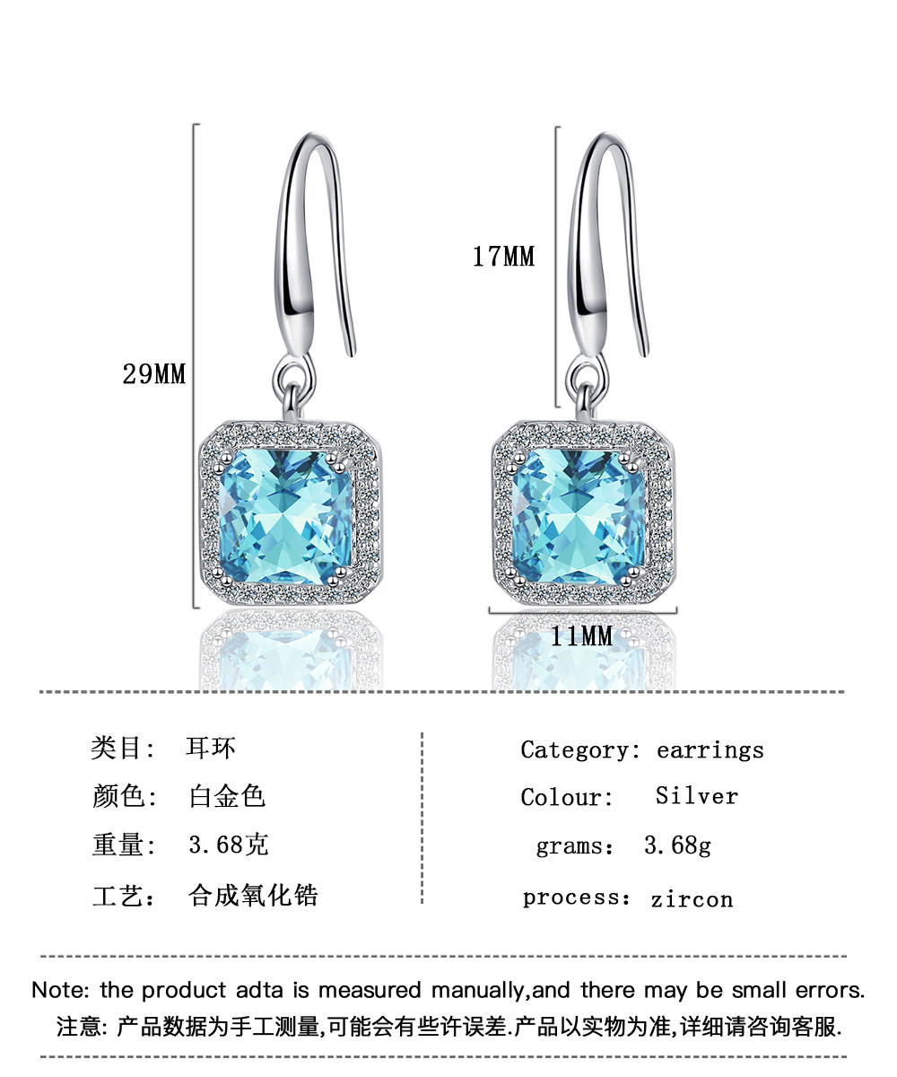 Ins Square Blue Green Red Black Zircon Drop Dangle Earrings For Women Vintage Wedding Engagement Party Jewelry 11