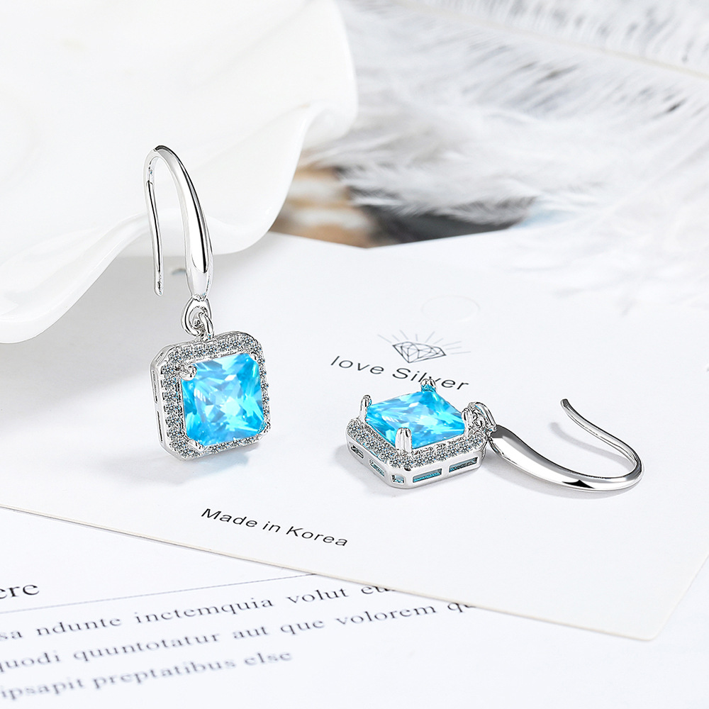 HOT ! Ins Square Blue Green Red Black Zircon Drop Dangle Earrings For Women Vintage Wedding Engagement Party Jewelry