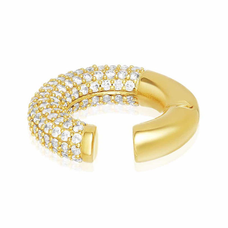 HOT ! Gold Plated C Letter Ear Clip Diamond Earrings Female Simple Crescent Small Fresh Earrings INS Earrings