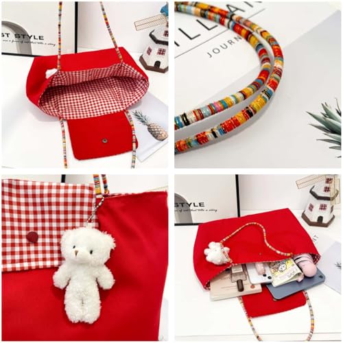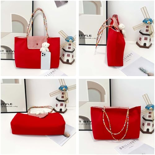Teclado Kawaii Hobo Bag with Cute Accessory Denim Cotton Casual Shoulder Stachel Bag Travel Daypacks (Red) 7