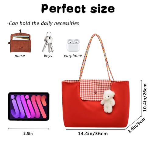 Teclado Kawaii Hobo Bag with Cute Accessory Denim Cotton Casual Shoulder Stachel Bag Travel Daypacks (Red) 6