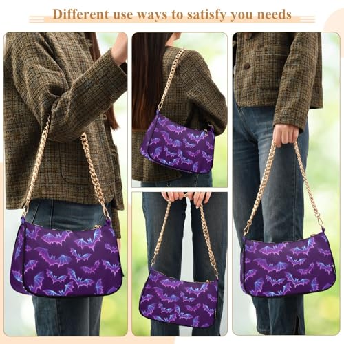 Clutch Shoulder Bags Tote Evening Purse Handbags for Women Halloween Bat Purple Hobo Bags with Zipper Closure 6