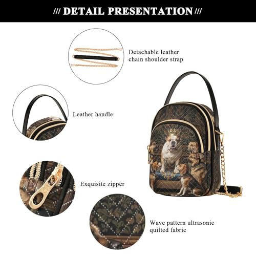 Shoulder Purse Handbag King Dogs Quilted Cell Phone Wallet Chain Purse Cute Zipper Crossbody Bowler Bag, 5.9" × 8.3" × 3.1" 4