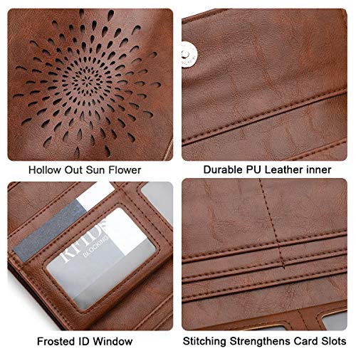 HOT ! APHISON Womens Wallets RFID Blocking Leather Clutch Long Wallet for Women Card Holder Phone Organizer Ladies Travel Purse Hollow Out Sunflower Design Gift