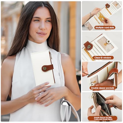 • SLIM & LIGHTWEIGHT: Measure 7.60 x 4.13 x 0.5 inches. Comes with 16 credit card slots and 2 ID window, 2 zippered pockets for bills. If you get this womens wallets, you will realize that all your bank cards, credit cards, insurance cards and IDs will remain organized. Please note: This is a long women's wallet with a length of 7.6 inches, which is suitable for all large tote bags. Please be aware that it is not suitable for small purse
