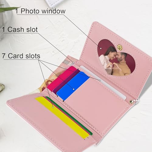 Small Wallet Women, Rabbit Print Cute Wallet with Pendant and Heart-Shaped ID Window Trifold Ultra-Thin Coin Purse (Pink) 5