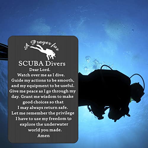 • ★World with: Dear Lord. Watch over me as I dive. Guide my actions to be smooth, and my equipment to be useful. Give me peace as I go through my day. Grant me wisdom to make good choices so that I may always return safe. Let me remember the privilege I have to use my freedom to explore the underwater world you made. Amen .Scuba diving gifts for men,diving quote gift for diving lover,everyone has their favorite sport, and the diver wallet card can be used to tell others the funny of diving.