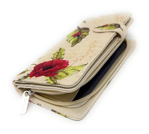 Shag Wear Ladybugs and Poppies Large Nature Wallet for Women and Teen Girls Vegan Faux Leather Beige 7" 6