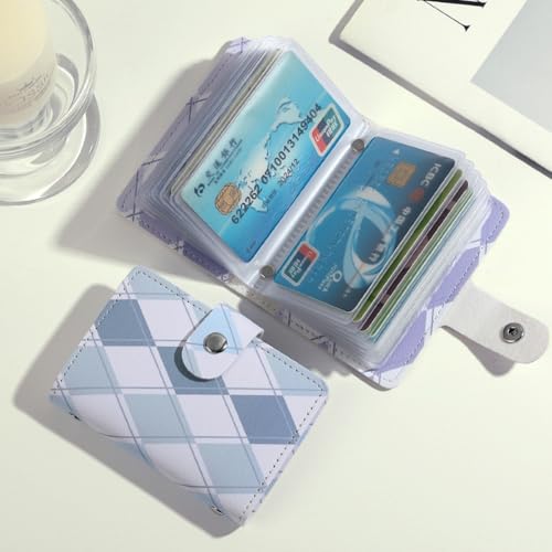 Card Holder PU Multifunctional Short Wallet Small With Checkered Pattern Card Bag Women(Blue) 7