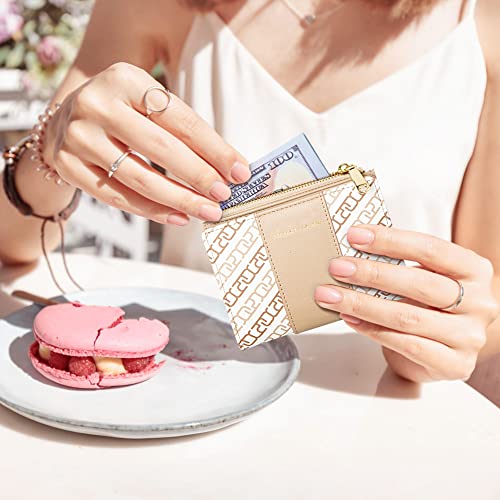 OIDERY Small Card Holder Wallet for Women, Bifold Compact Wallet with ID Window-Womens Wallet with Zipper Purse Khaki 4