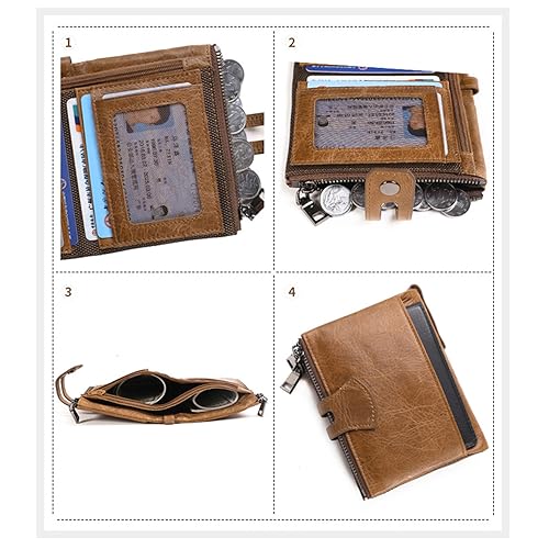 Zip Wallet for Men Women Genuine Leather Bifold Credit Card Holder Snap Fastener Stylish With 1 ID Window 307# Brown 4
