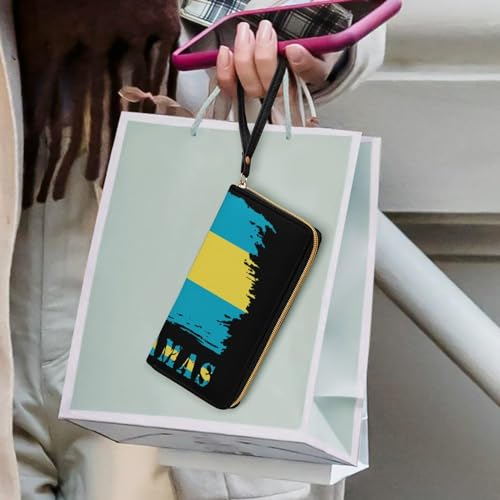 HOT ! generic Vintage Bahamas Bahamian Flag Leather Wallet for Womens Men, Patriotic Flag PU Zip Wallet with String Around Long Large Purse Coin Card Holder Ladies Billfold, 19.7x10.5cm