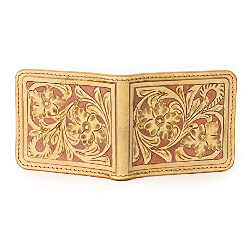 Illy Genuine Full Grain Leather Handtooled Hipster Wallet Floral Bi-Fold, Credit Card 1