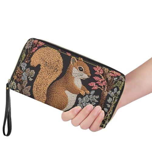 Trendy Funny Women Wallet with Wrist Strap Squirrel Wallet for Women Travel Portable Wristlet Long Purse with Zipper Pu Leather Credit Card Holder for Ladies 1