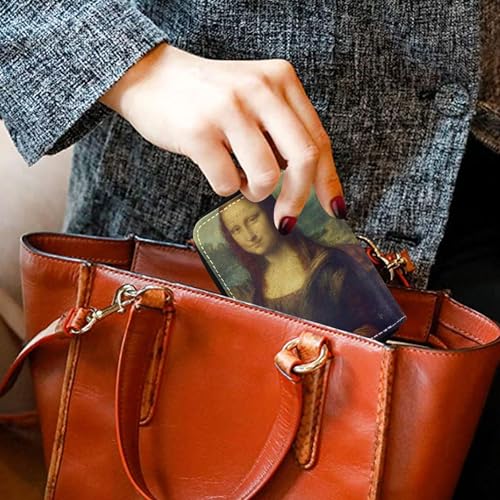 RFID Blocking Credit Card Holders Leather Women's Wallet Zip Around Zipper Coin Purse with Key Ring Leonardo da Vinci Mona Lisa La Gioconda 5