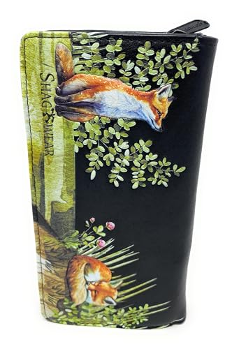 HOT ! Shag Wear Fox Family Large Animal Wallet for Women and Teen Girls Vegan Faux Leather 7" Black