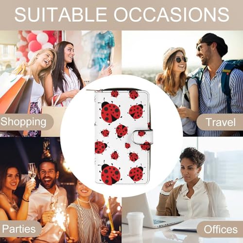 Cute Red Ladybug Cartoon Pattern Leather Wallets Large Capacity Zipper Pocket Card Holder with ID Window, 19.7x11x3.5cm, style 1