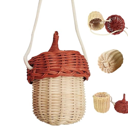 HOT ! Woven Basket,Girls Bag,Kids Handbag, Rattan Bag for Kids Acorn Shaped Rattan Storage Basket Mini Kids Crossbody Bag Lidded Woven Cute Breathable Kids Bag Birthday Gift