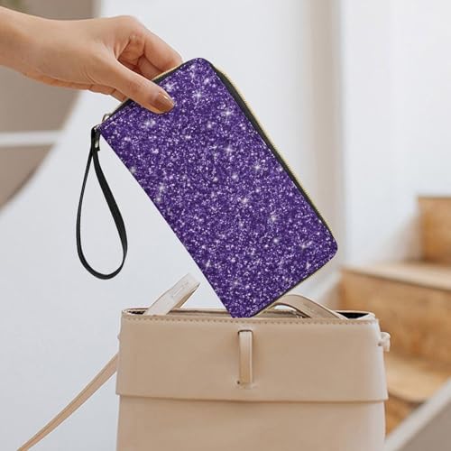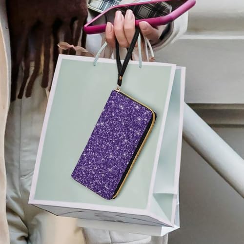 Purple Ombre Glitters Wallet Wristlet Zipper Purse with Hand Strap Travel Credit Card Holder for Adult Daily Use Gifts 7