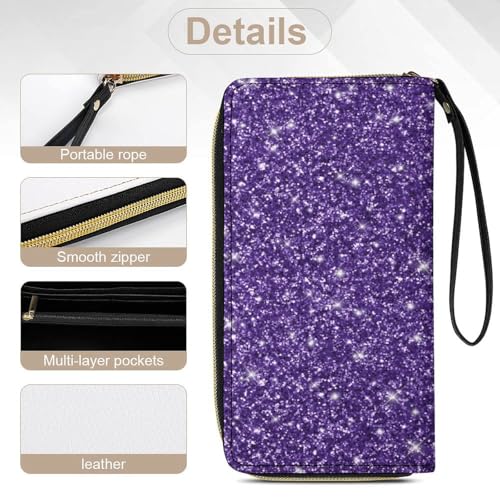 Purple Ombre Glitters Wallet Wristlet Zipper Purse with Hand Strap Travel Credit Card Holder for Adult Daily Use Gifts 5