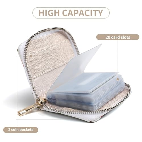 • Dimensions: Measures 4.5x3.15 inches, with 20 PVC card slots and 2 coin pockets for ample storage.