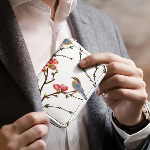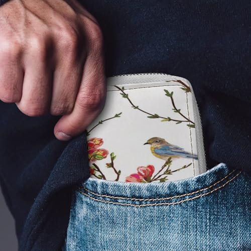 HOT ! Women Leather Coin wallet, Key Change Organizer Zipper Card Holder Purse Clutch Pouch Pocket 4.5x3.15 in Print Spring Tree Branches Red flowers Green Leaves Birds