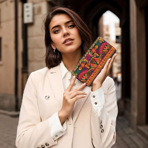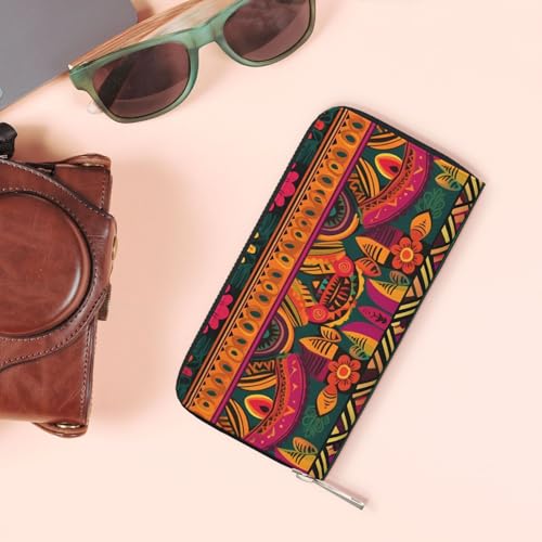 HOT ! Mexican Folk Art Boho Leather Wallet For Women Girl, Zip Around Credit Card Holder Long Pu Wallet Clutch Purse Waterproof Travel Handbag