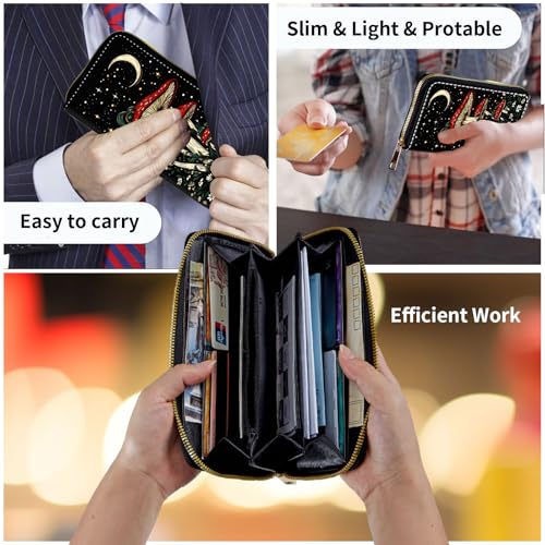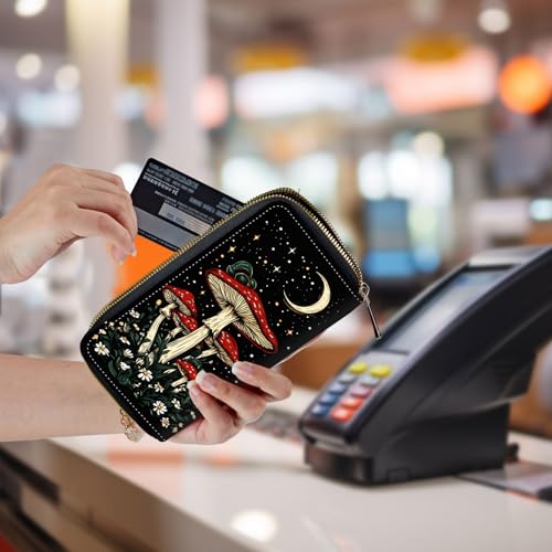 More information about Wallet,Leather Long Wallet Suitable For Ladies And Teenagers - Detachable Wristband + RFID Travel Wallet With Card Slot - Mushrooms Under Moon Stars