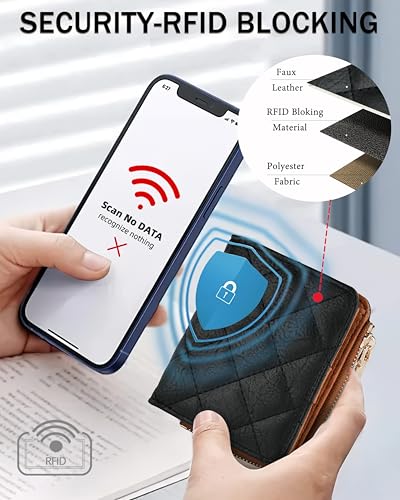 Small RFID Bifold Wallet for Women Slim Card Holder with Zipper Coin Pocket & 2 ID Windows,Compact Gift Wallet 3