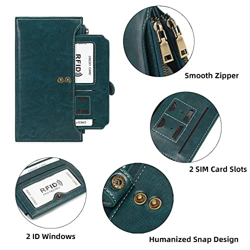 • Multi Card Case Purse: This women's wallet has 19 card slots, 2 zipper pockets, 2 SIM card slots and 2 ID windows, it can perfectly organize your essentials such as credit cards, cash, coins, checkbook, driver's license, passport, ID card, cell phone, etc.