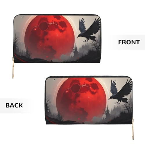 • Quality Material: Crafted from ultra-fine microfiber PU leather, this Gothic Red Moon Raven Print wallet women will surely impress with its soft inner lining. Our ladies wallet combines premium faux leather and quality metal zipper for a comfy, lightweight, and sturdy experience. Discover the elegance of leather wallets for women with our superior card holder wallet