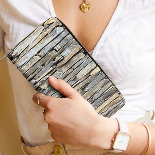 Womens Leather Wallets Wall Made of Stone Slabs Wallet for Women Large Capacity Card Phone Holder Ladies Purse 3