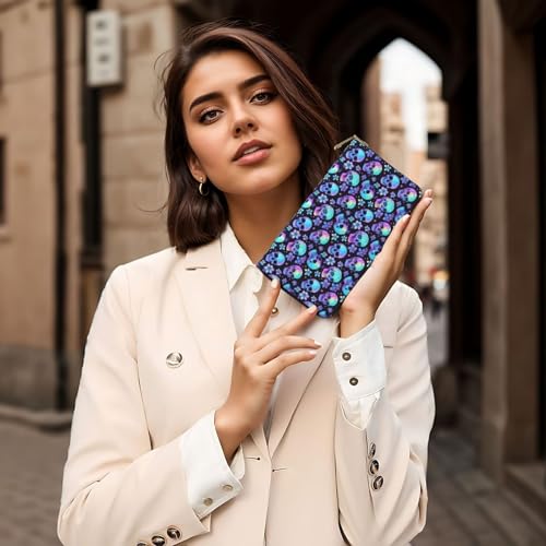 HOT ! Skull Flower Tie Dye Print Wallet Women Men, Long PU Leather Wallets for Women, Cute Womens Travel Wallet Purse Pouch with Zipper Pocket