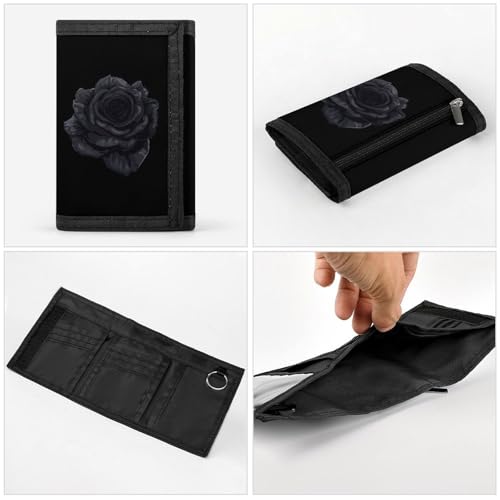 Beautiful Black Rose Flower Trifold Wallet Slim Credit Card Holder for Women Men 2