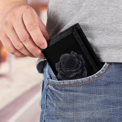 Beautiful Black Rose Flower Trifold Wallet Slim Credit Card Holder for Women Men 3