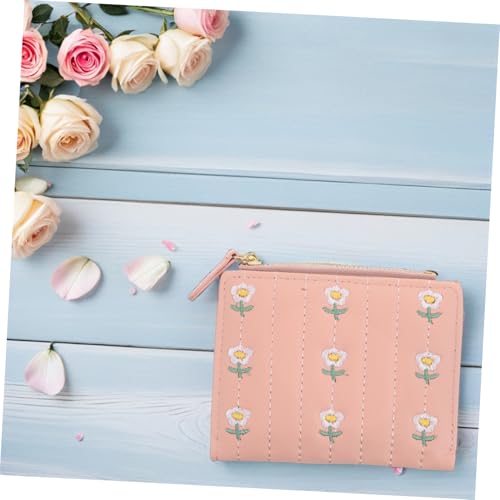 KESYOO Small Wallet Cute Purse: Women Pu Elegant Floral Embroidery Two-fold Design Card Slots And Zippered Coin Pocket Bifold Card Holder For Girls Ladies 5