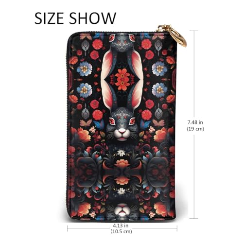 Stylish Black rabbit's face Prints Leather Wallet - Long Clutch for Women, RDurable Material, 12 Card Slots, Zipper Compartments 1