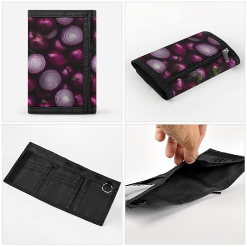 Red Onions Purple Onions Trifold Wallets Lightweight RFID Blocking Wallet Credit Card Holder Custom Gifts for Men Women 6