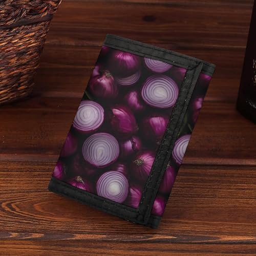 HOT ! Red Onions Purple Onions Trifold Wallets Lightweight RFID Blocking Wallet Credit Card Holder Custom Gifts for Men Women