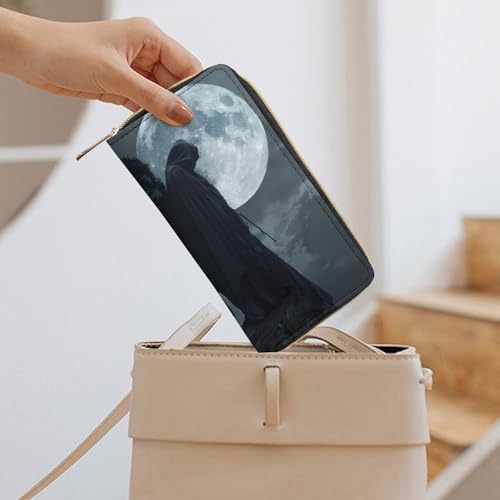 Horror Vampire Devil Grim Reaper Wristlet Wallets for Men Women Leather Purse Clutch Cute Card Holder 7