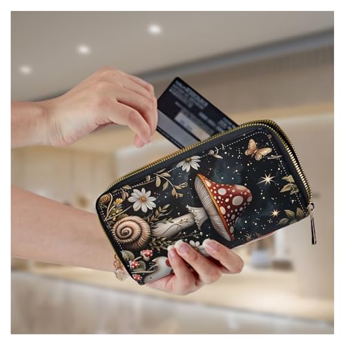 HOT ! Wristlet Wallet for Women Teen Girls Womens Wallet RFID Blocking Credit Card Holder with Removable Wristlet,Leather Phone Wallet Clutch Large Capacity Ladies Travel Purs,Mushroom and Butterfliy