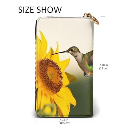 HOT ! Hummingbird Sunflower Wallet For Women Men Clutch Rfid Blocking Leather Wallets Large Capacity Purse Credit Card Holder Money Case With Zipper Phone Holder Long Travel Purse