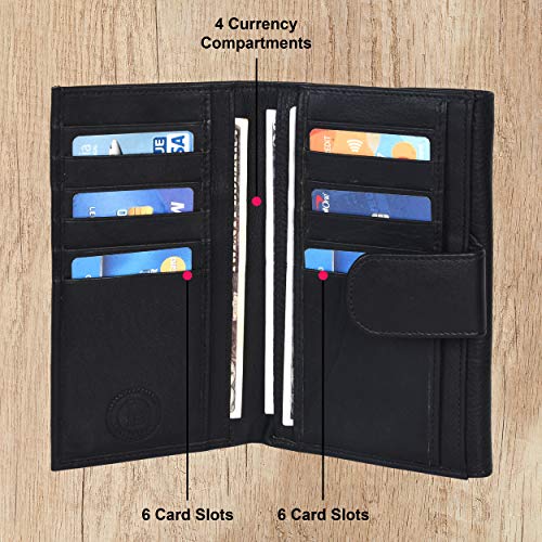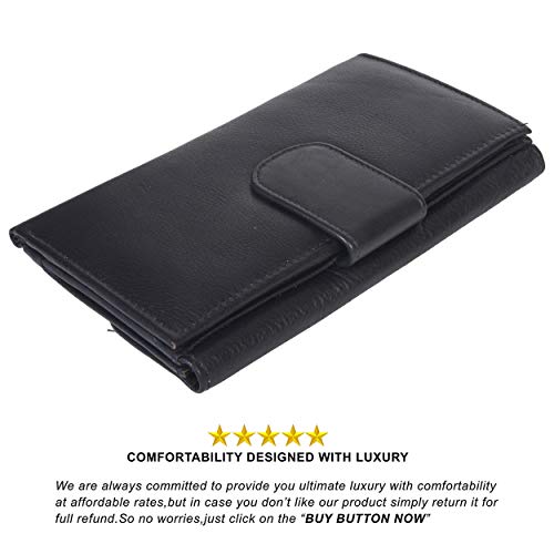 Leatherboss Genuine Leather Clutch Party Credit Debit Card Holder Wallet Purse with Coin Pocket for women, Black 1