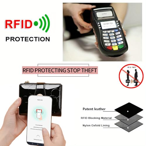 • Material: The wallet is made of two layers of patent leather and cowhide leather combined with ultra-fine fiber synthetic leather, which is soft and durable, high-quality and well made, and can be used for a long time.