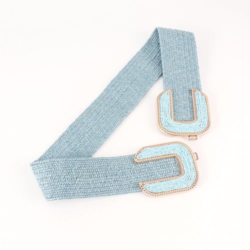 Women's Braided Thick Belt Fashion Holeless Wide Raffia Holeless Elastic Beach Chunky Belt for Summer Dress 7