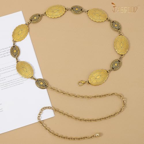 HOT ! JASGOOD Western Metal Concho Belt for Women Western Oval Cowgirl Waist Chain Belt for Dresses Jeans Country Concert Outfit
