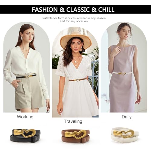 • Fashion Thin-brimmed Belt: The belt has no perforated design, which is concealed and beautiful. The gold metal fasteners add exquisite details and highlight the texture of the belt. The metal buckle is easy to open and close, and it is firmly fixed. Classic solid colors, simple styles, versatile and eternal. A variety of colors are available to meet different matching needs.