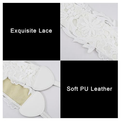 White Cinch Corset Boho Lace Up Waist Belt Vintage Flower Bowknot Wide Faux Leather Bow Tie Wrap Around Obi Trendy Waistband Belts Bulk for Women Dresses Clothes Shirts Costume Accessory 5