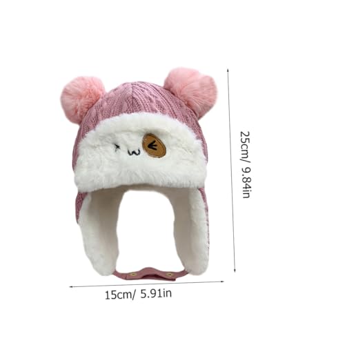 Boys and Girls Warm Beanie Hat Thick Cotton Cap for Boy Girl Adorable Cartoon Design for Outdoor Activities Birthday Christmas and Daily Use Pink 5