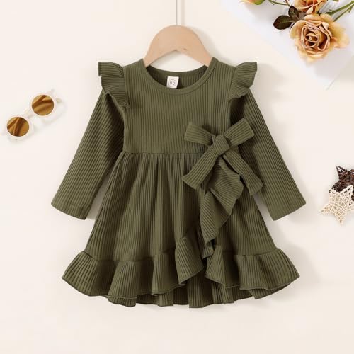 YOUNGER TREE Toddler Baby Girls Fall Clothing Solid Cotton Pit Irregular Skirt Winter Dress Long Sleeve Skirt Outfits 6